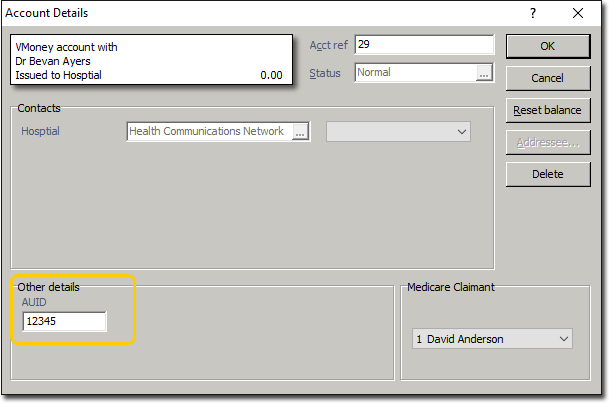 Click OK to save. This practitioner record is now configured to use the VMoney class.